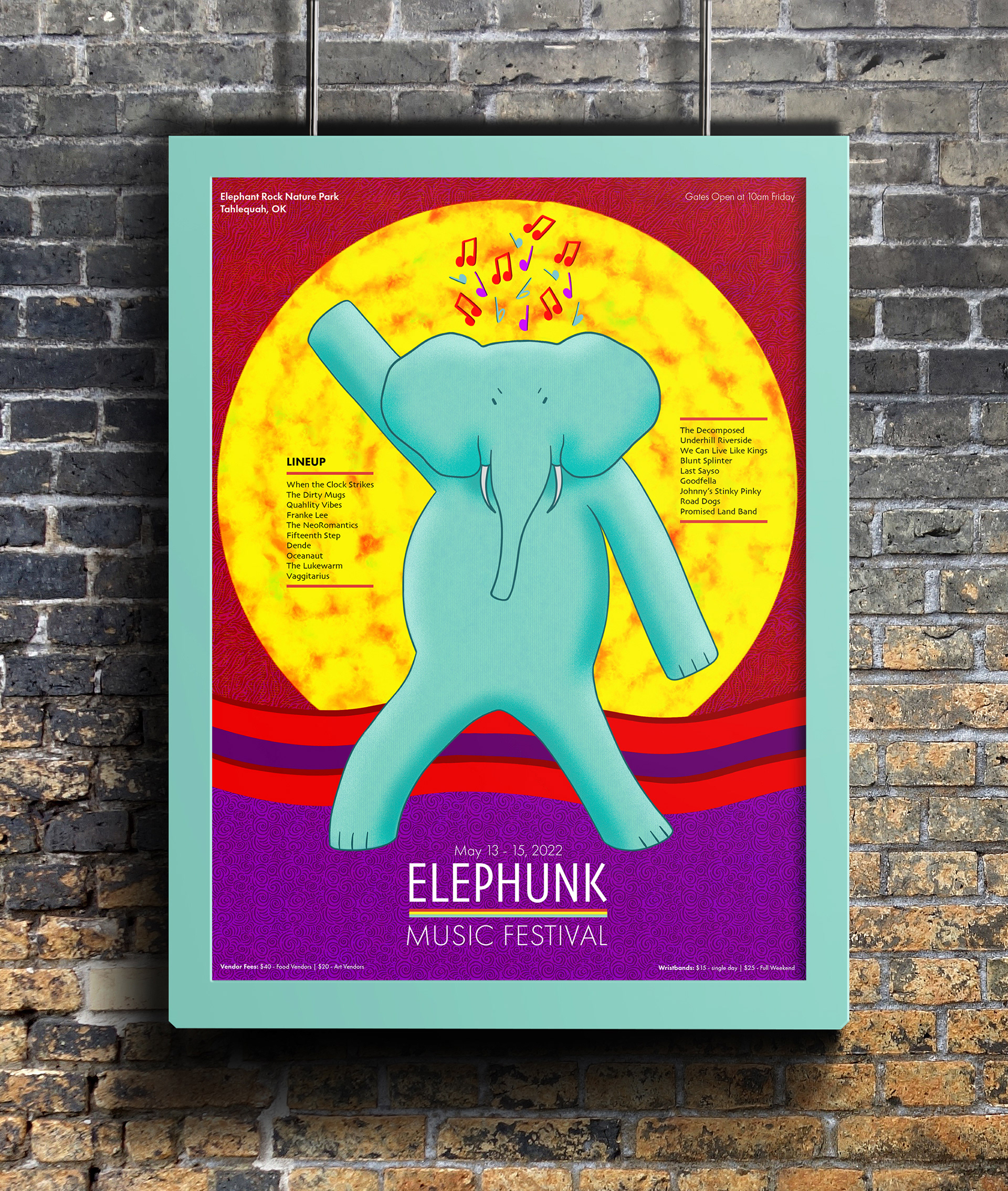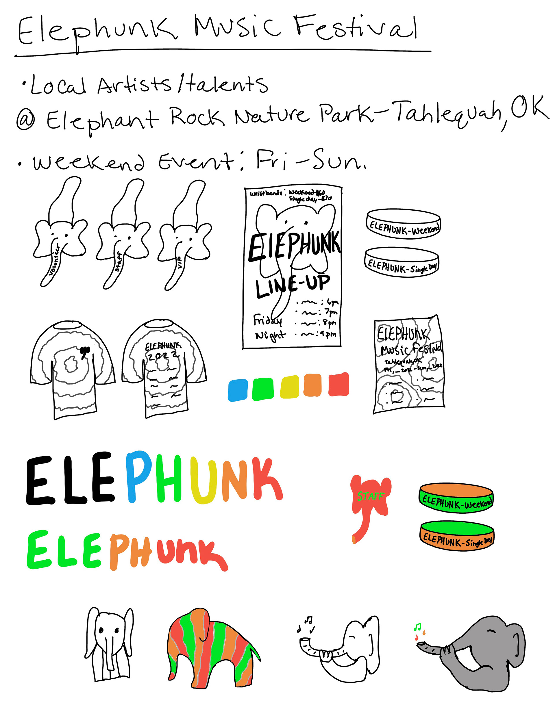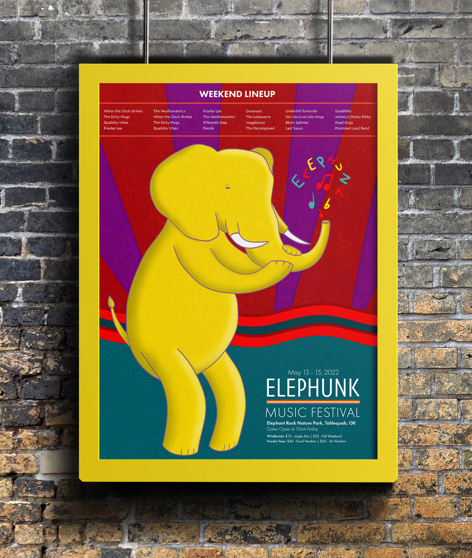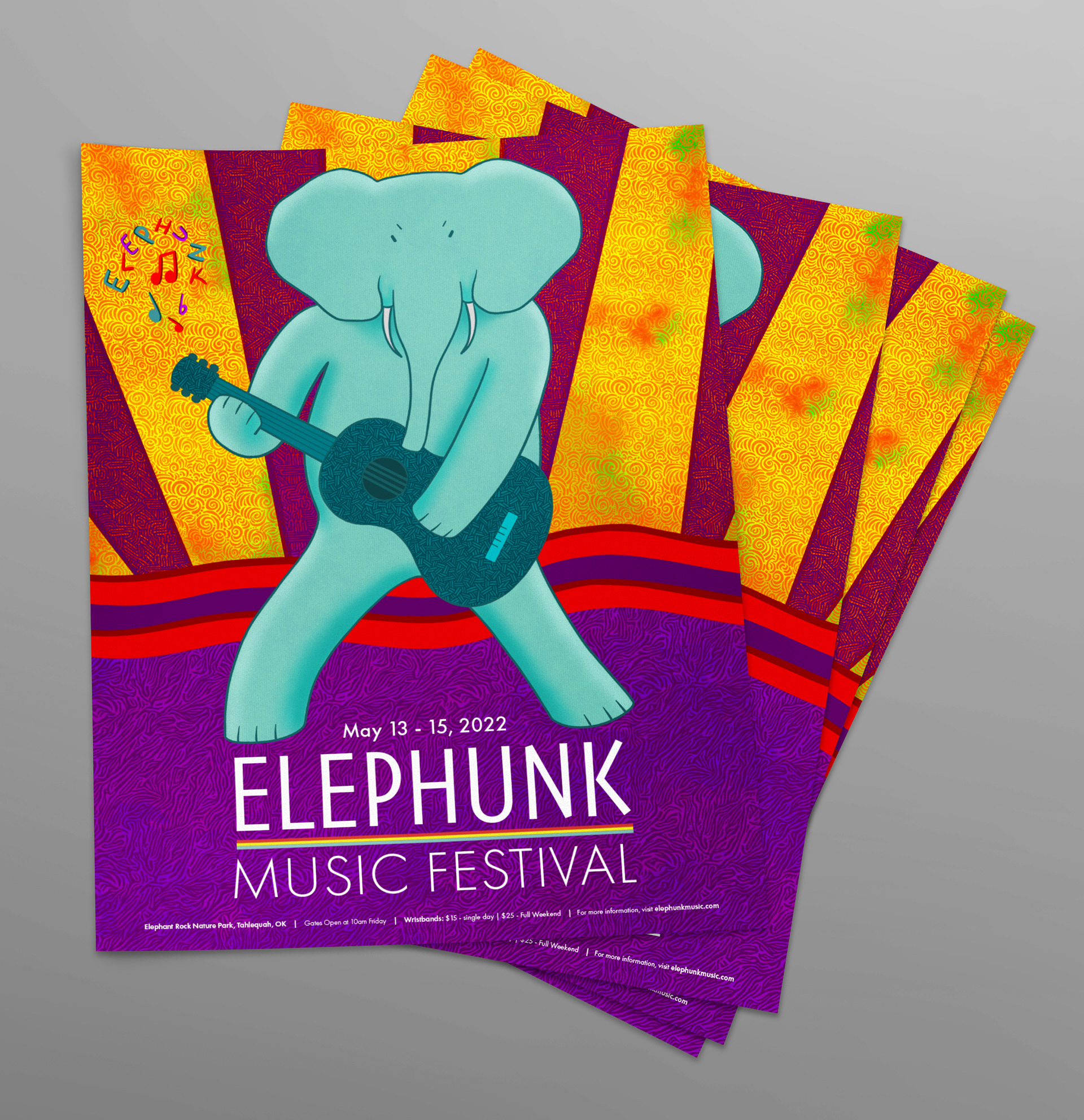 An illustrated systems brand for Elephunk Music Festival, a music festival held in Tahlequah, OK (Awards: AIGA FLUX Finalist)