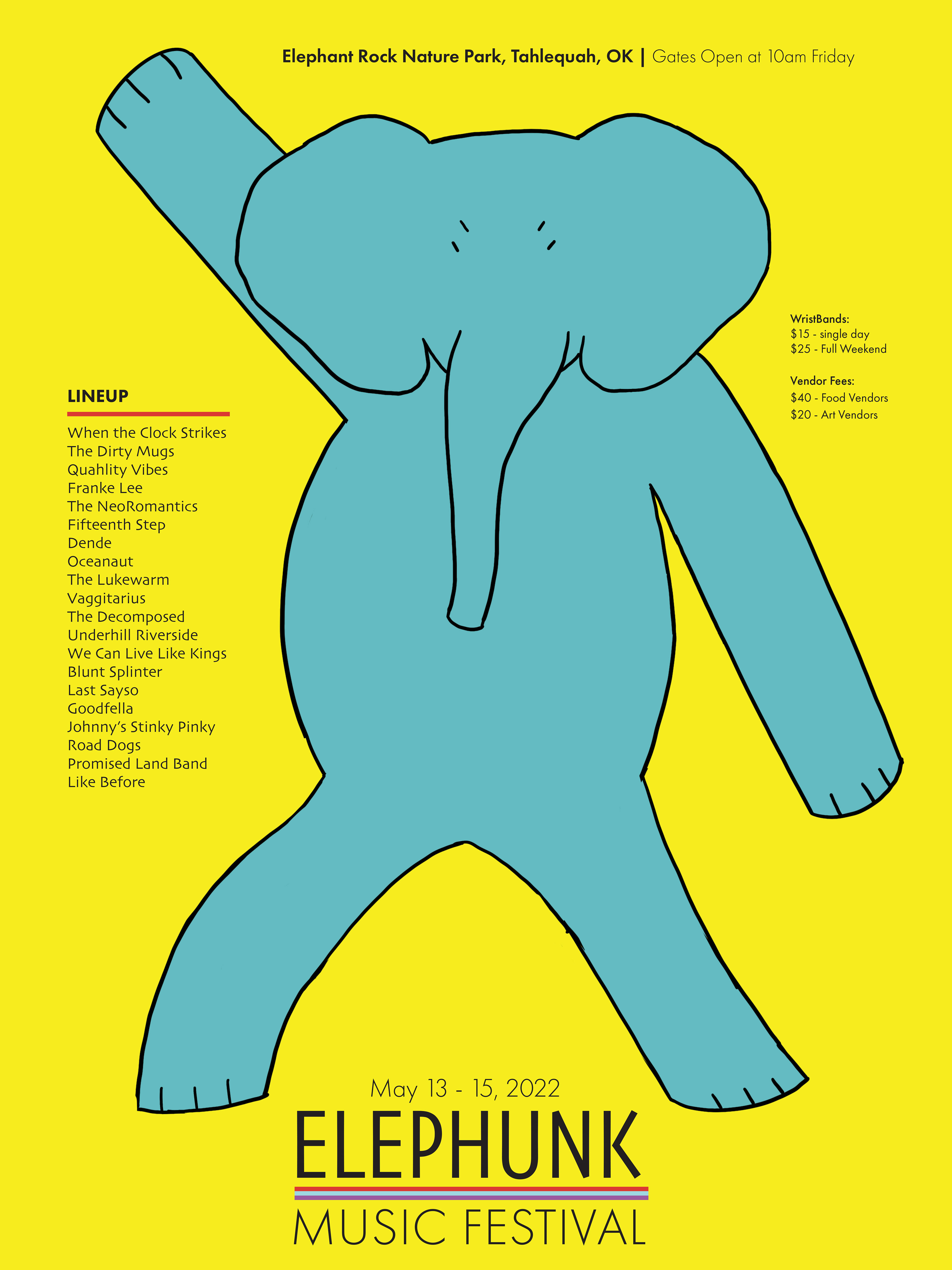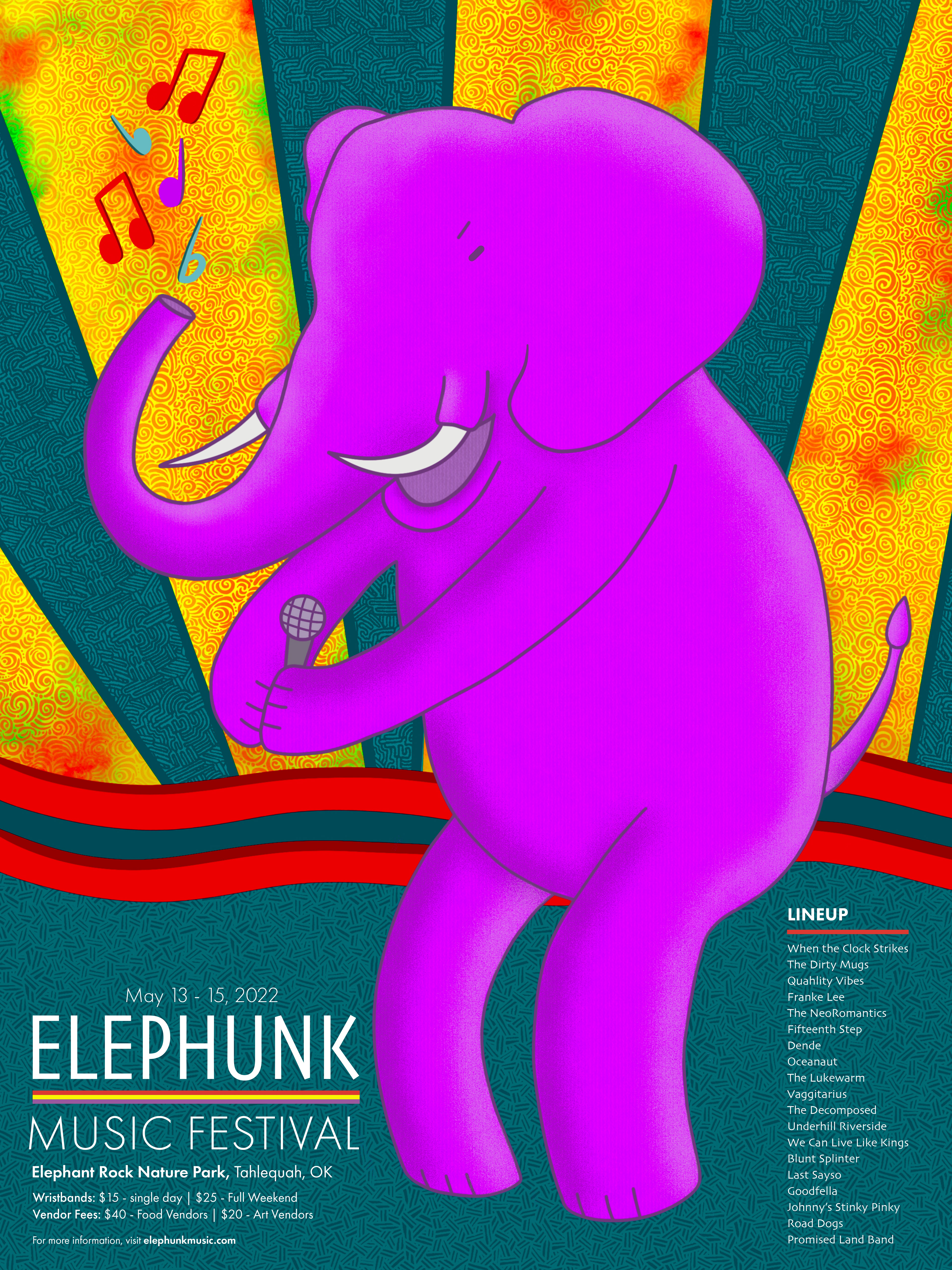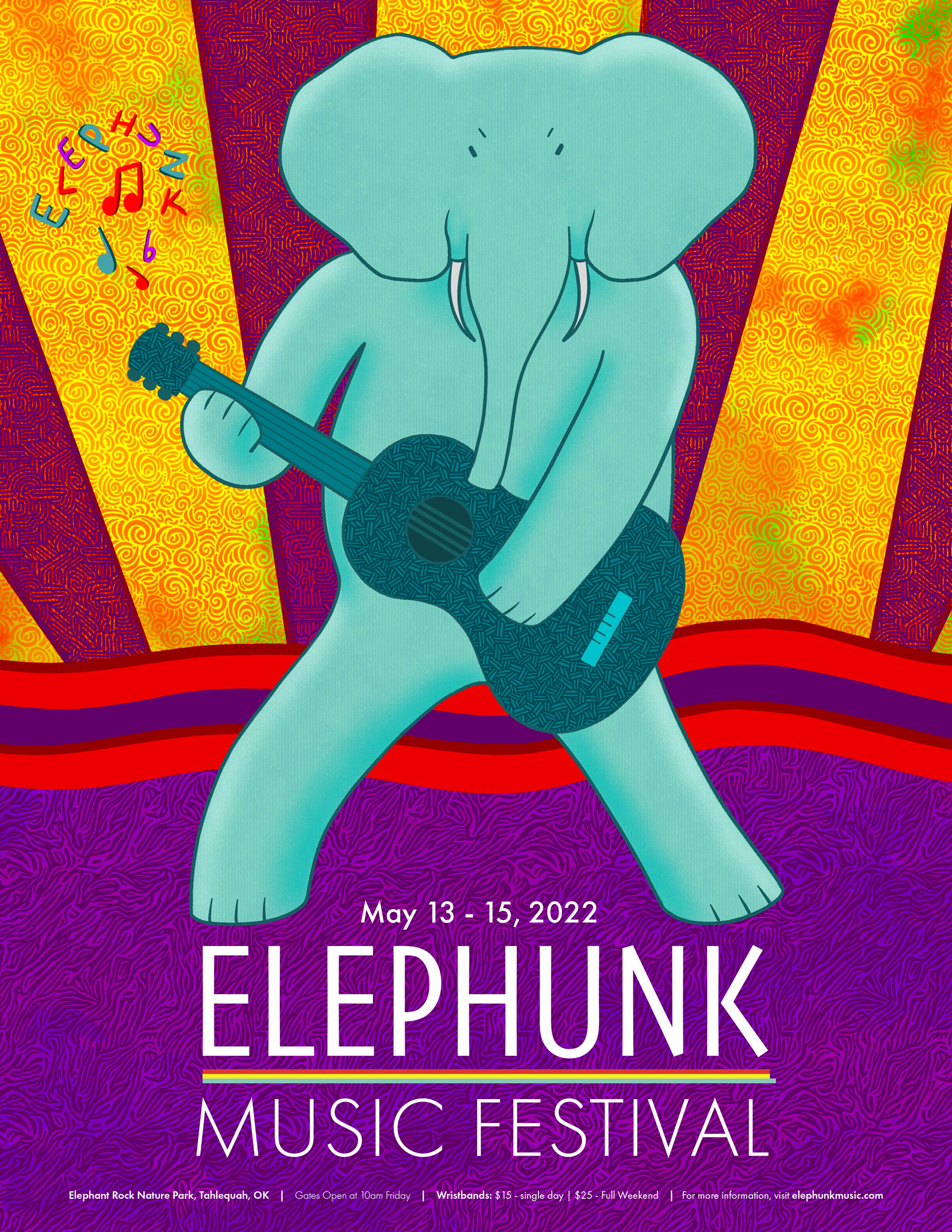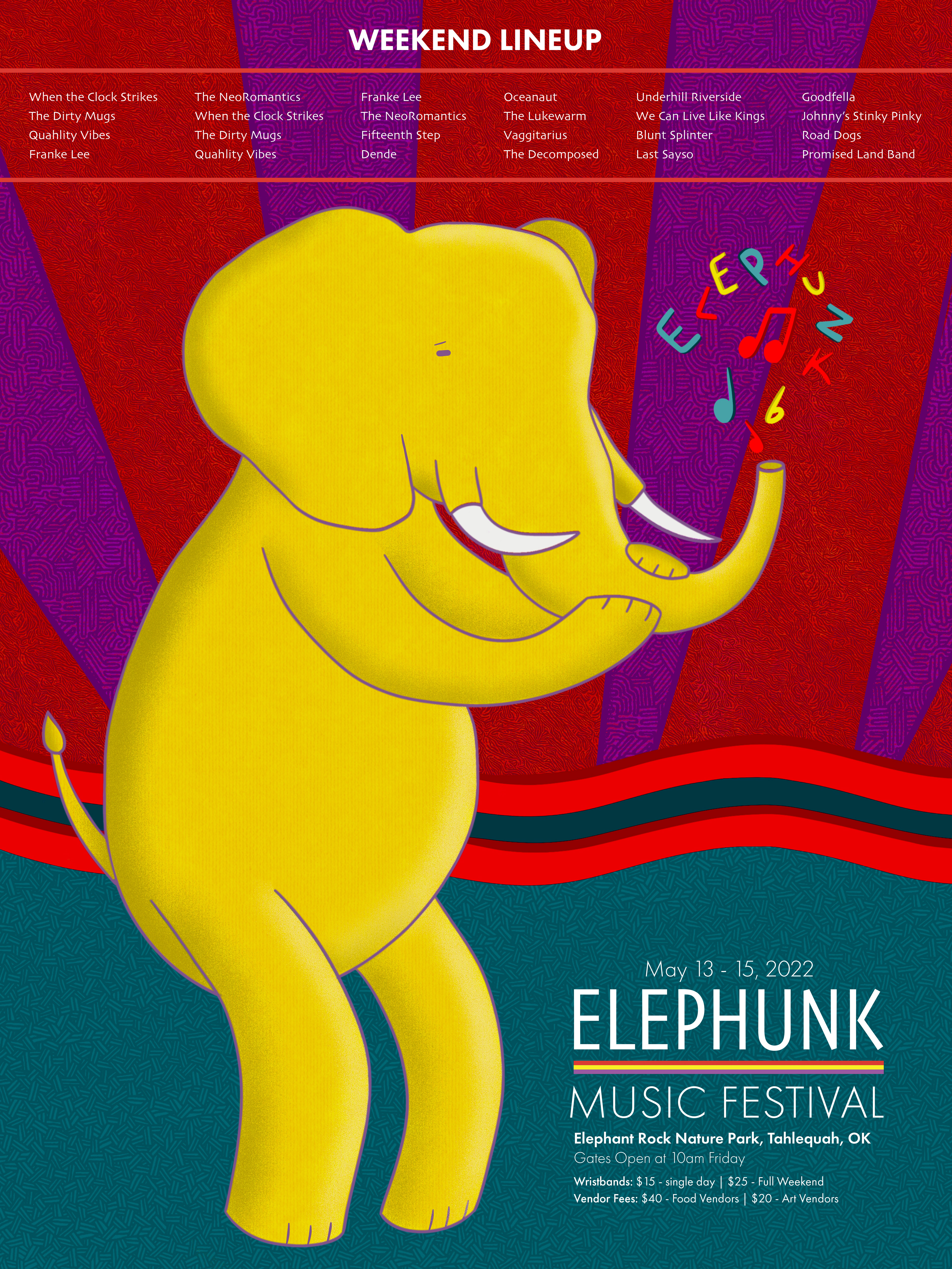 An illustrated systems brand for Elephunk Music Festival, a music festival held in Tahlequah, OK (Awards: AIGA FLUX Finalist)