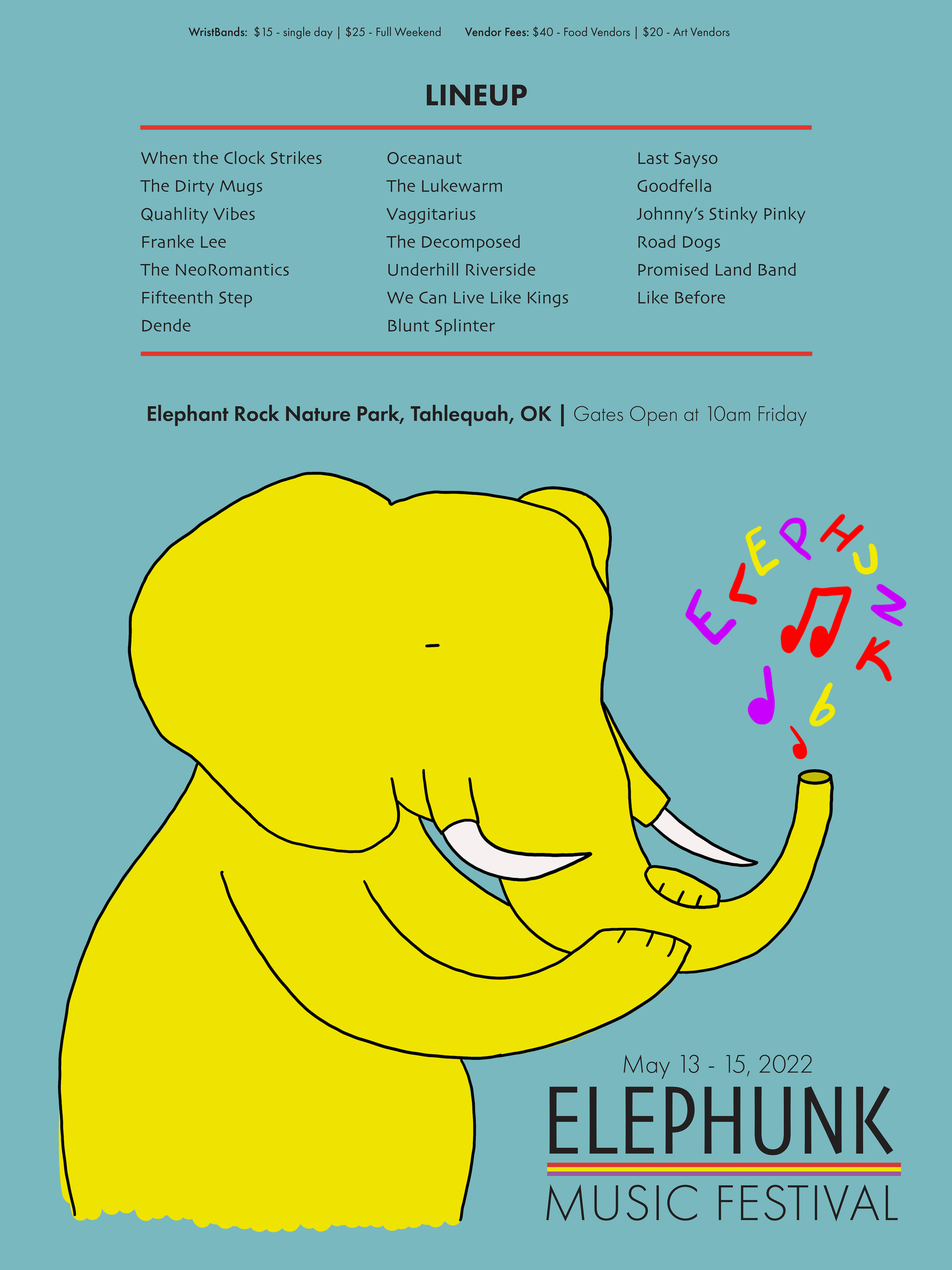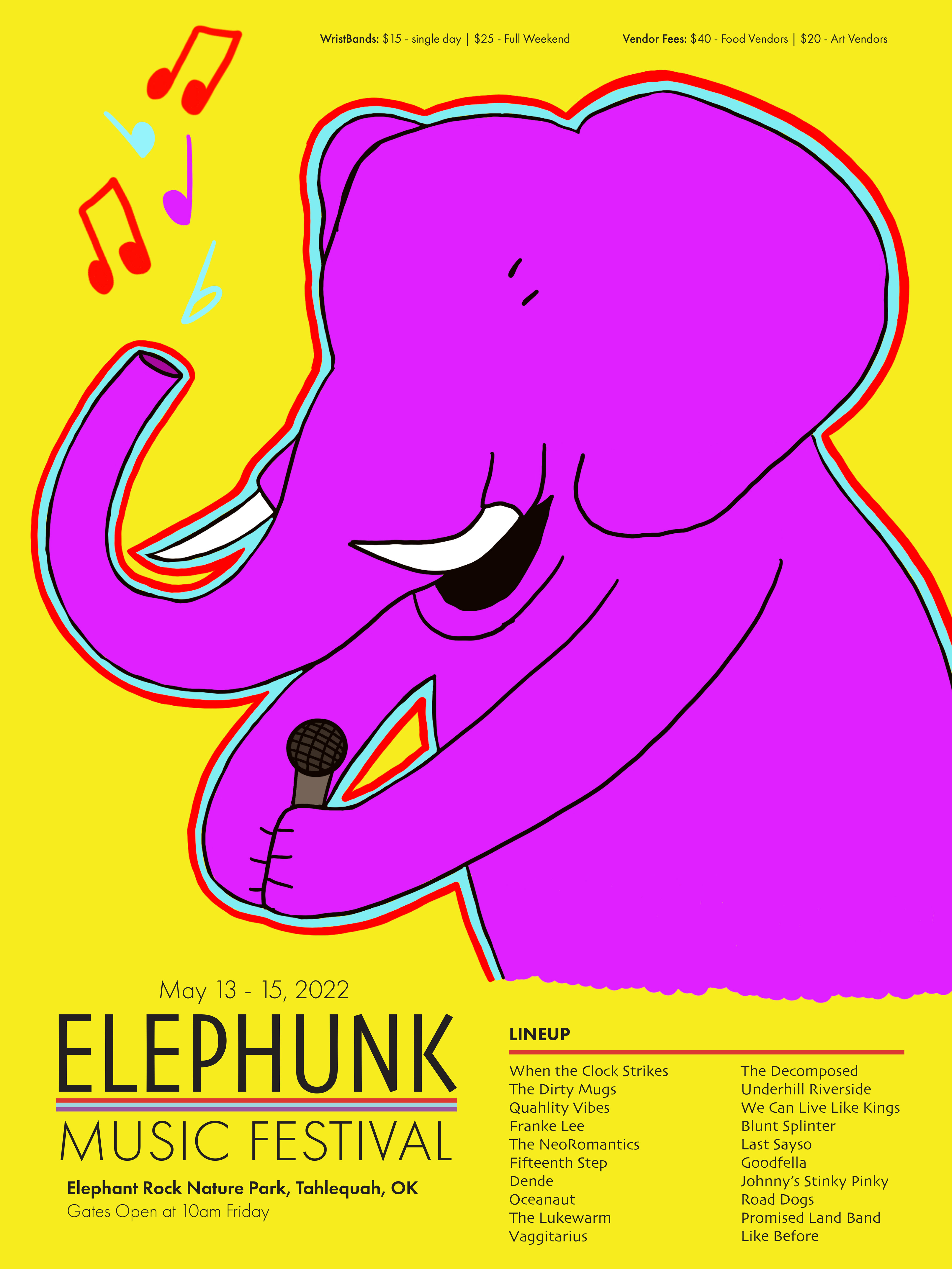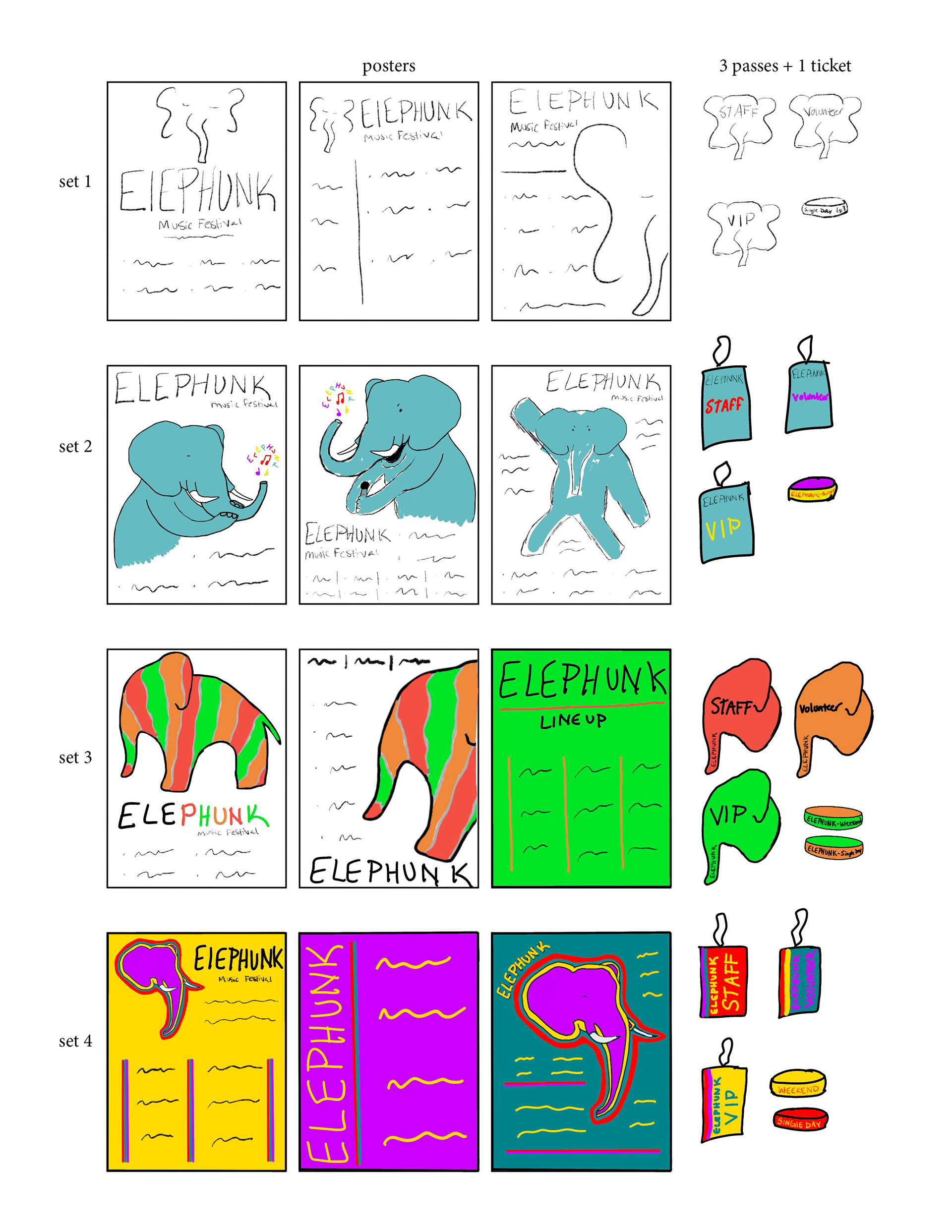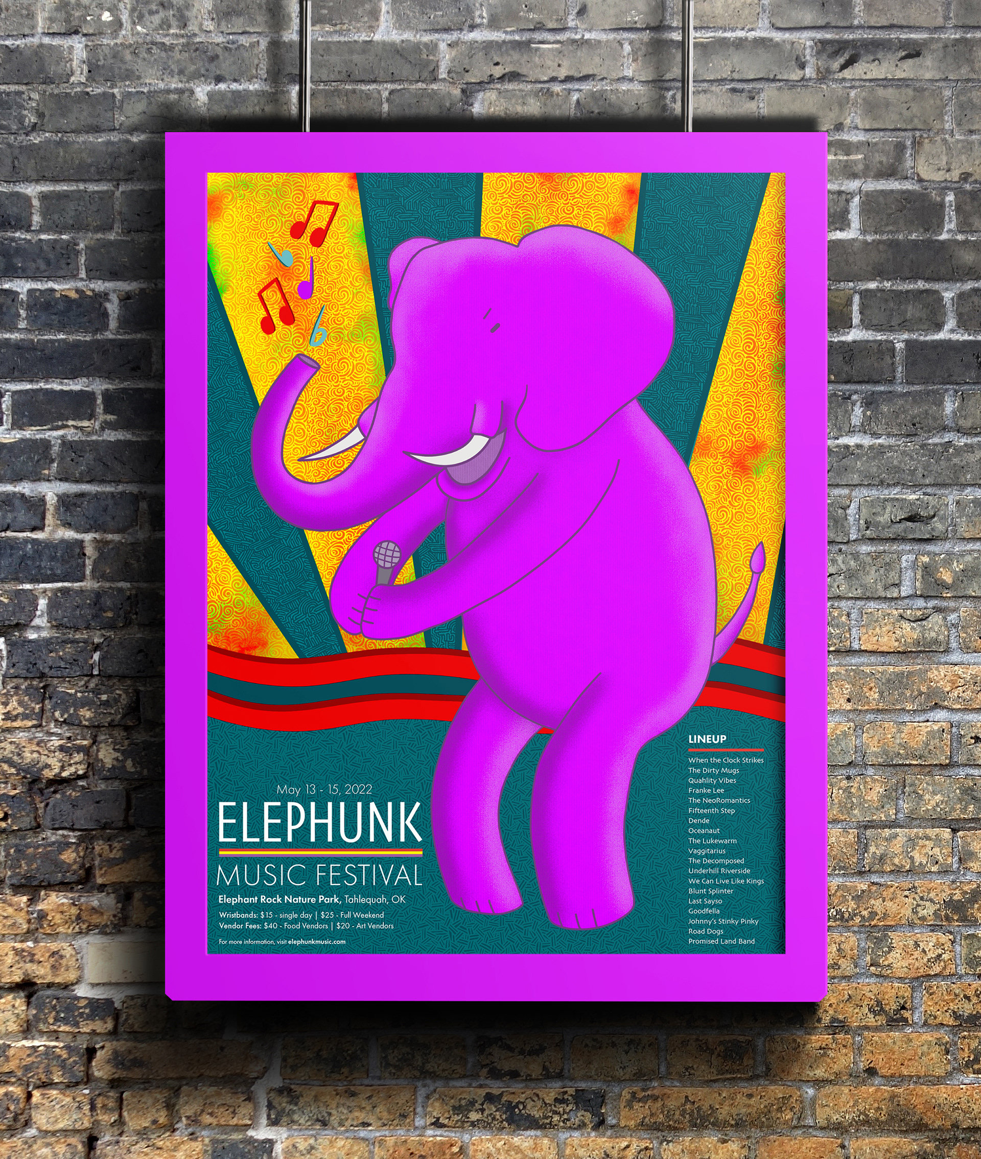 An illustrated systems brand for Elephunk Music Festival, a music festival held in Tahlequah, OK (Awards: AIGA FLUX Finalist)