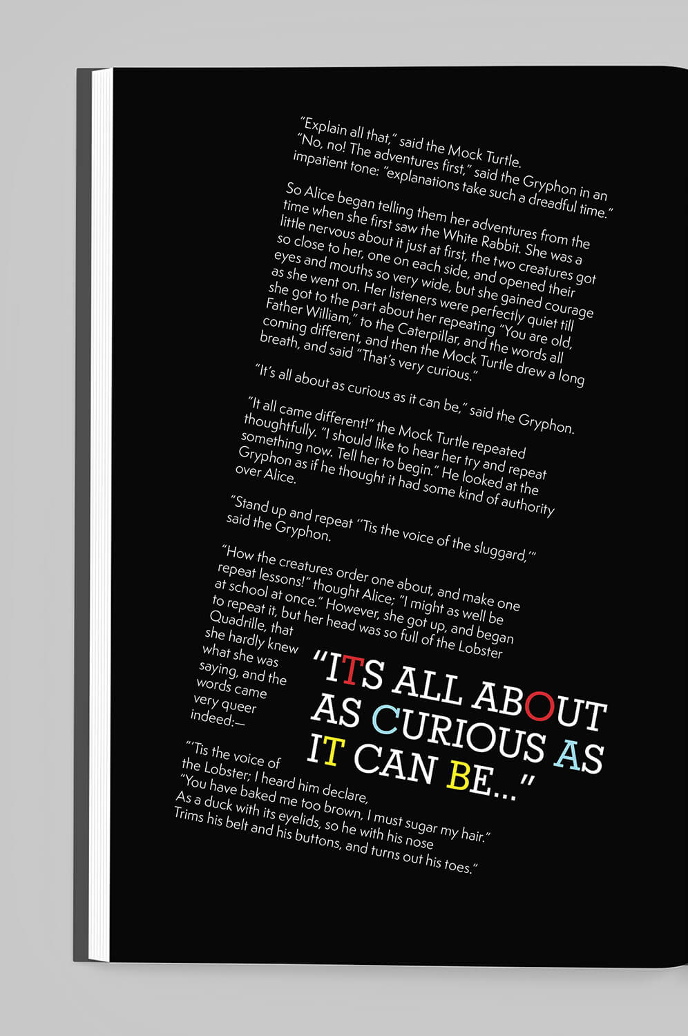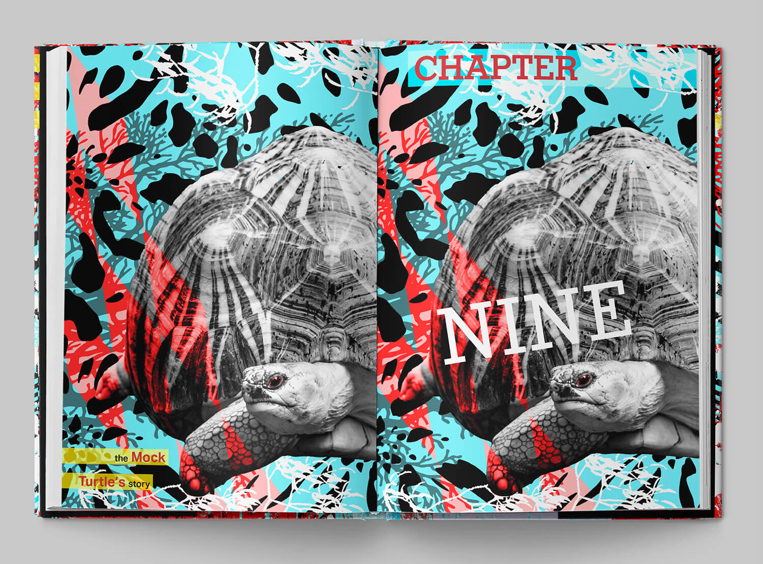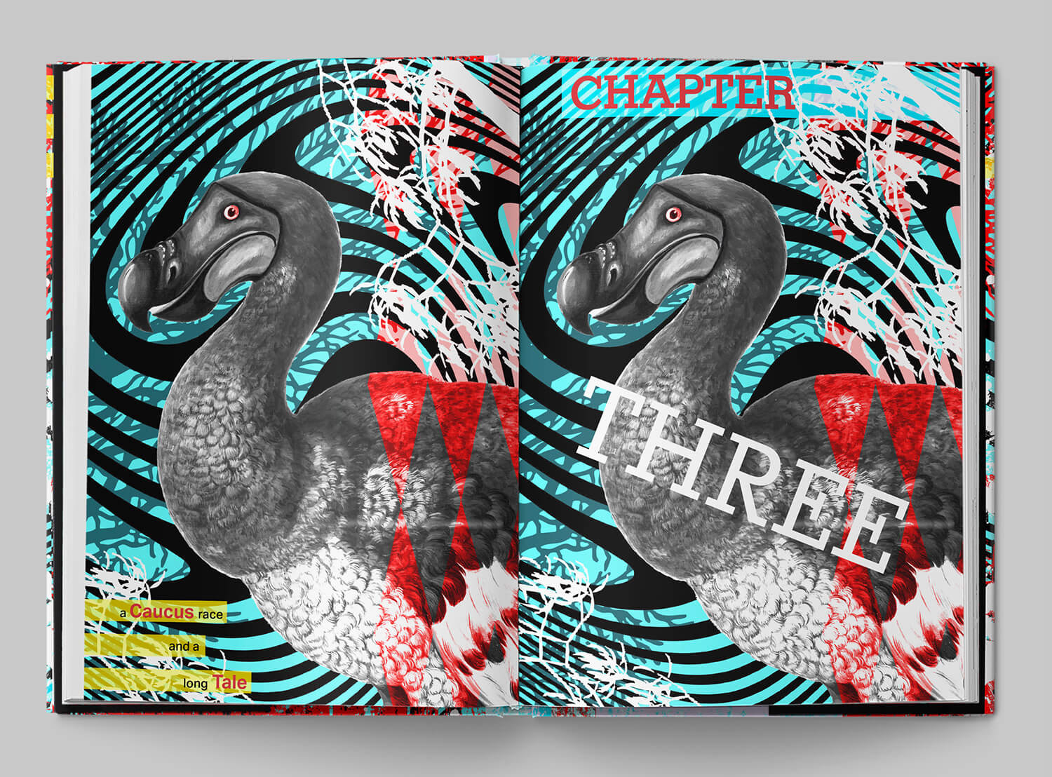 Re-design of Alice’s Adventures in Wonderland using photo montage, bold colors, and psychedelic patterns