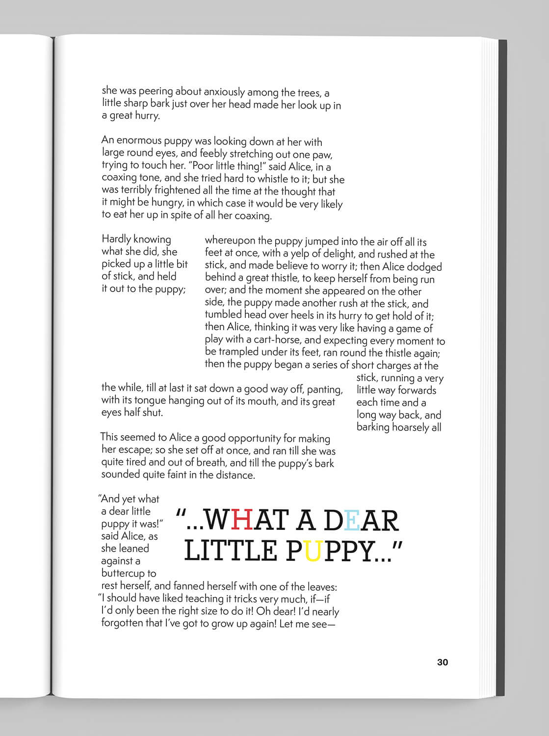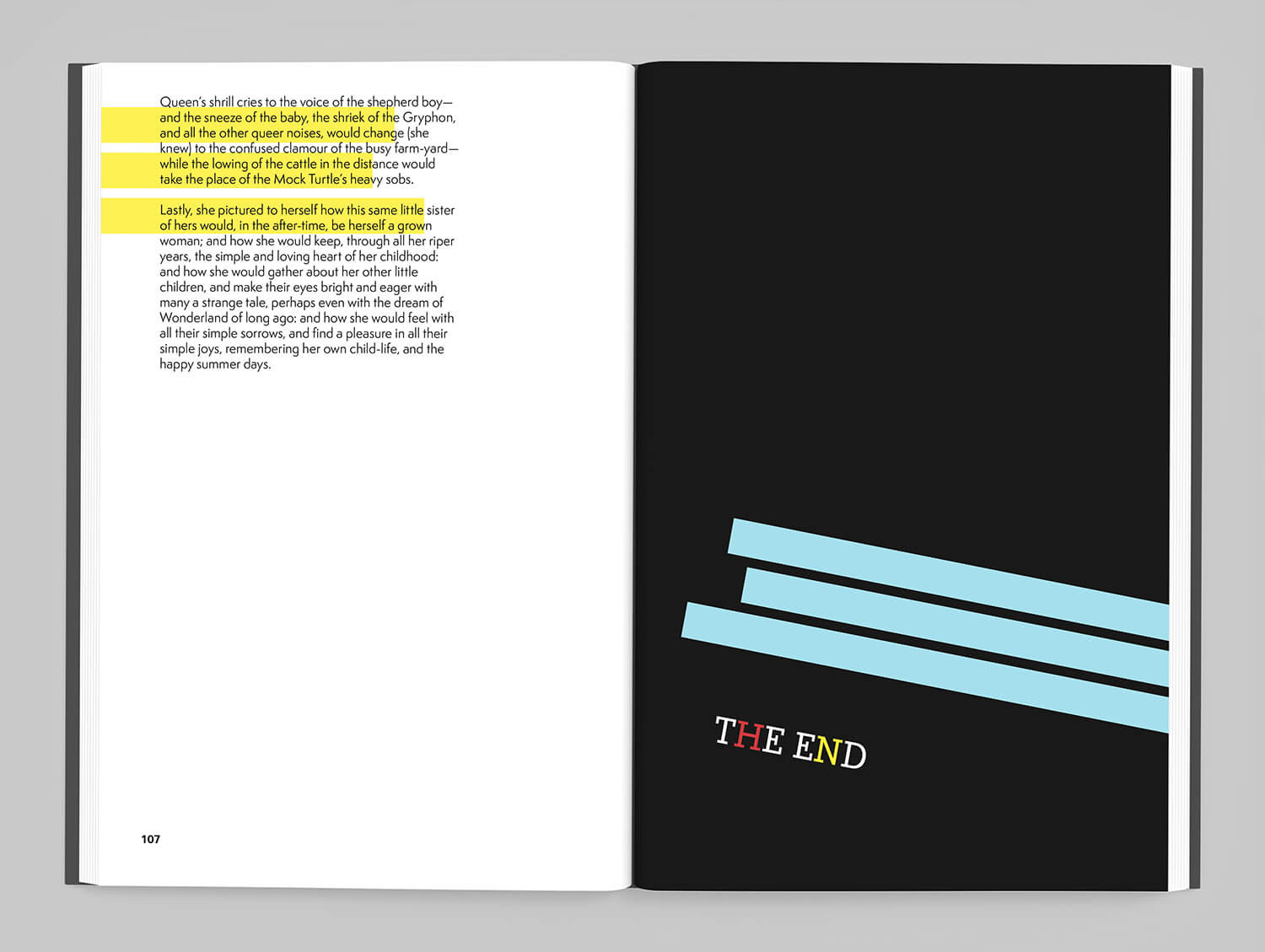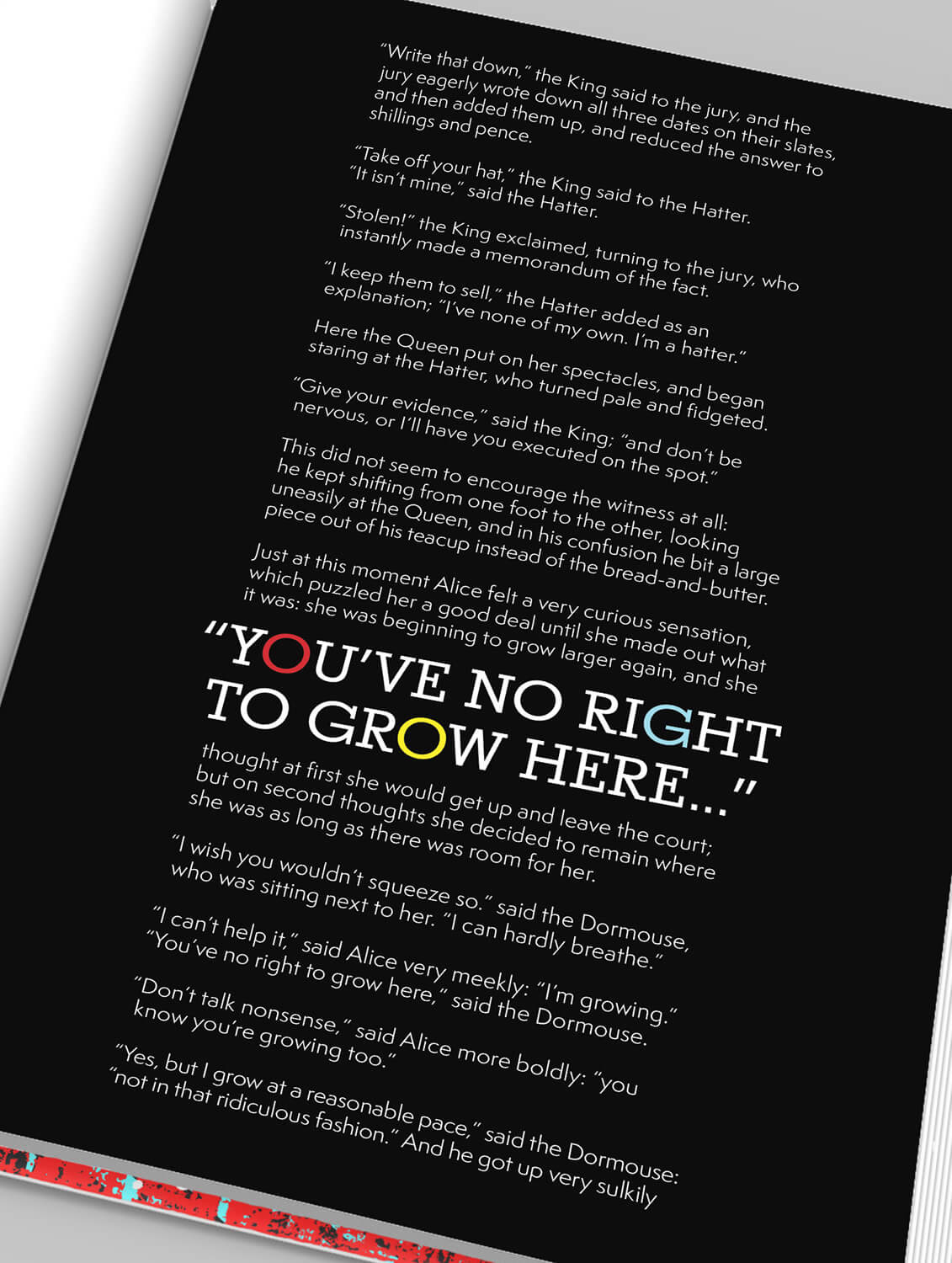 Re-design of Alice’s Adventures in Wonderland using photo montage, bold colors, and psychedelic patterns